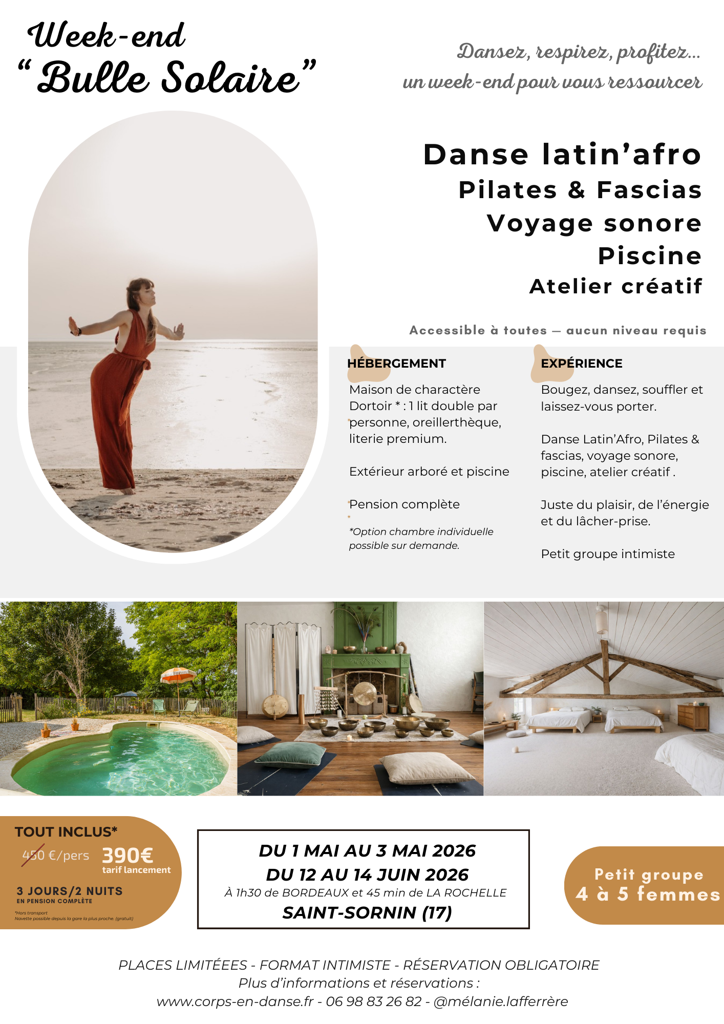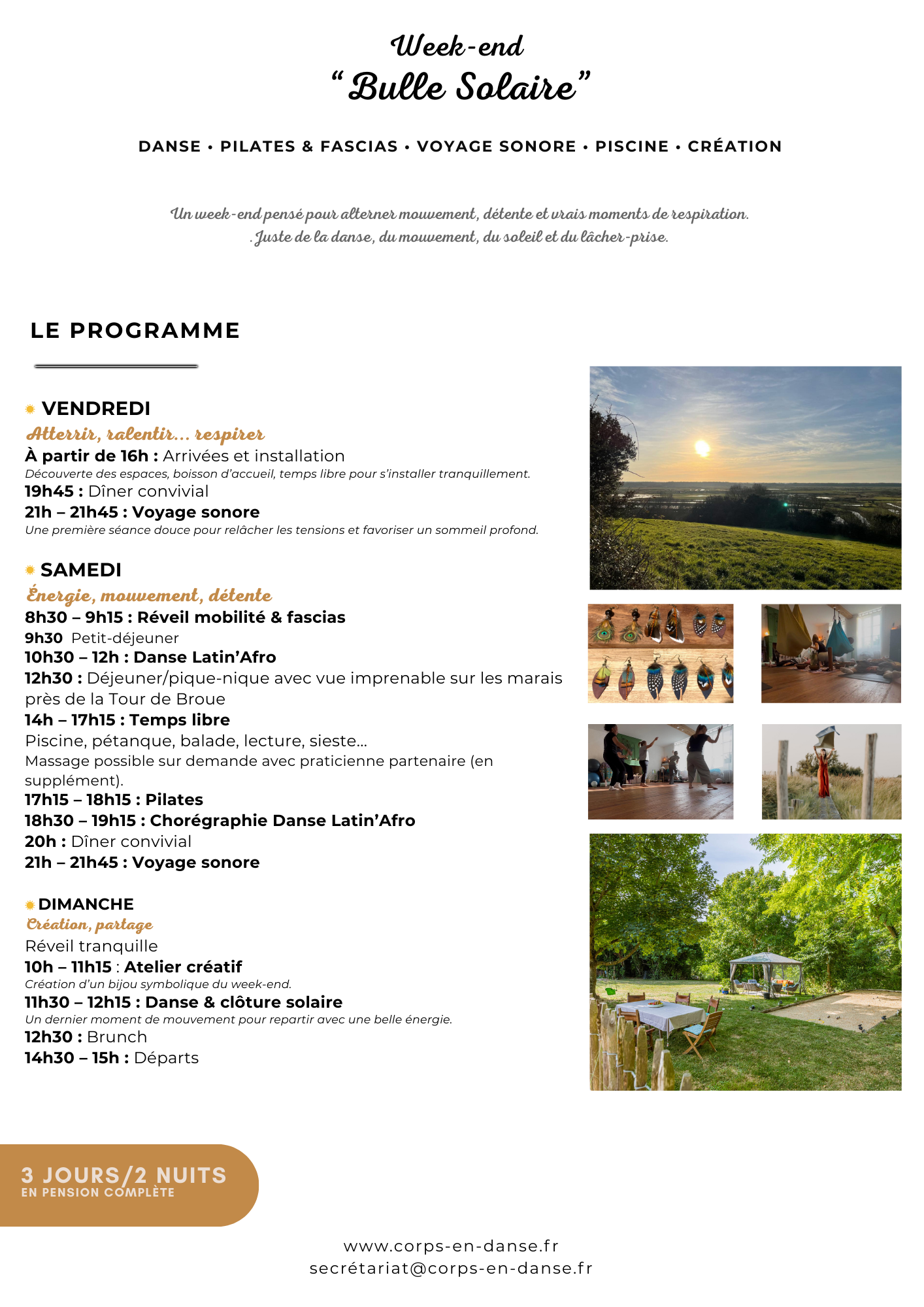 “Découvrez nos week-ends bien-être, pour vous détendre, danser et vous ressourcer.